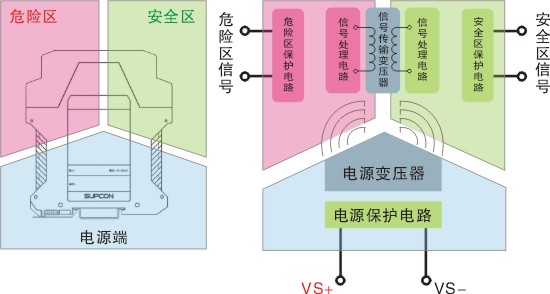 SB3000-Ex系列隔離柵均按GB3836.4-2000設(shè)計(jì),符合本安防爆要求,具備嚴(yán)格的隔離能力,利用內(nèi)部的隔離器件、限壓、限流元件來(lái)限制流向危險(xiǎn)區(qū)的故障能量,從而保證危險(xiǎn)場(chǎng)所的電器設(shè)備和人身的安全。